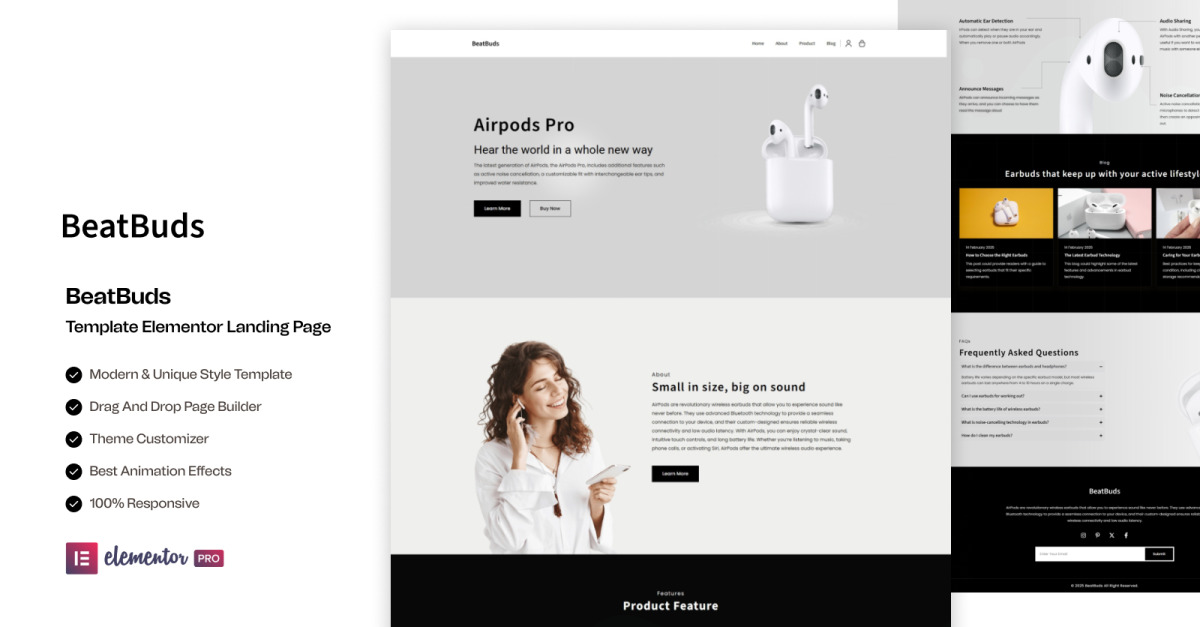 BeatBuds - Auricolari wireless Elementor Pagina di destinazione