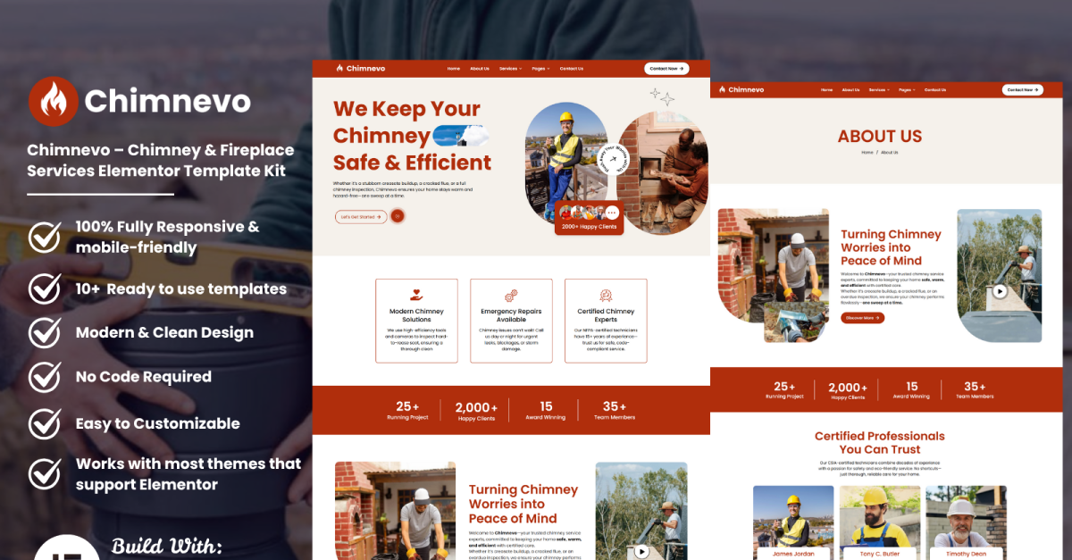 Chimnevo – Kit modello Elementor per la pulizia e la riparazione del camino