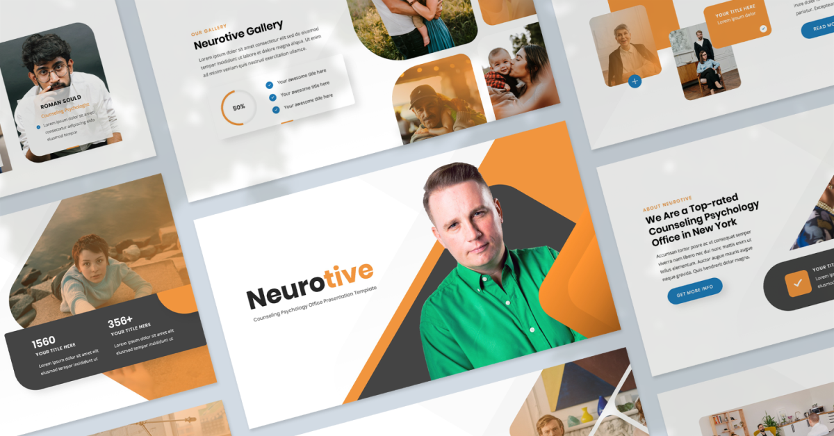 Il modello di presentazione neurotiva è adatto ad aziende e privati che possiedono uno studio di consulenza psicologica o una clinica di psicologia di consulenza. Forse hanno il loro studio privato o lavorano per un ospedale. Questo modello è per chiunque cerchi di aiutare le persone a migliorare la propria salute mentale. Sia che tu stia facendo un'offerta per un nuovo cliente importante o un portfolio aziendale, questo modello di Presentazioni Google ti consentirà di trasformare le tue informazioni e i tuoi dati in una presentazione in modo rapido ed efficiente.