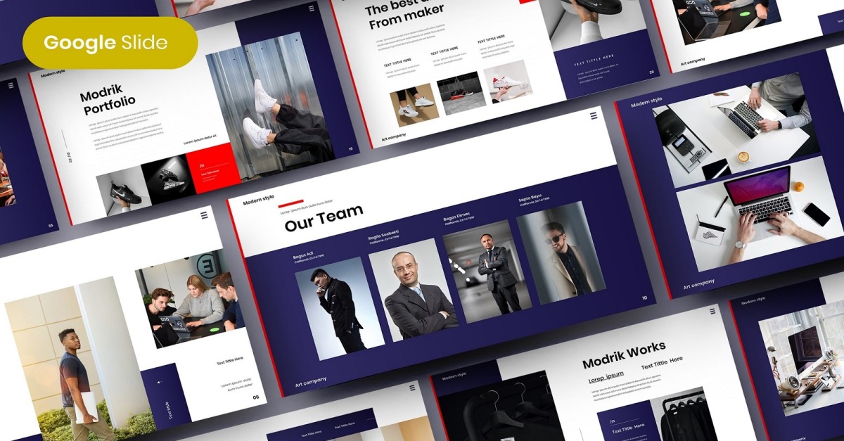 Ti presentiamo **Modrik - Modello di diapositiva Google aziendale**
