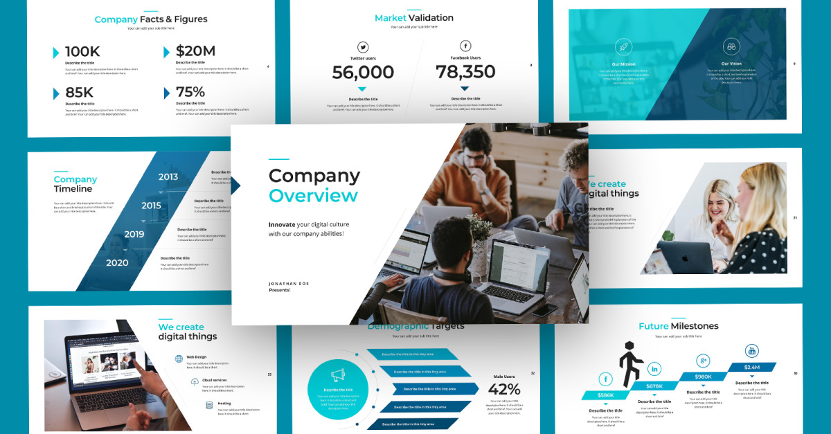 Agenzia creativa, Profilo aziendale, Aziendale e commerciale, Portfolio, Fotografia, Pitch Deck, Startup,