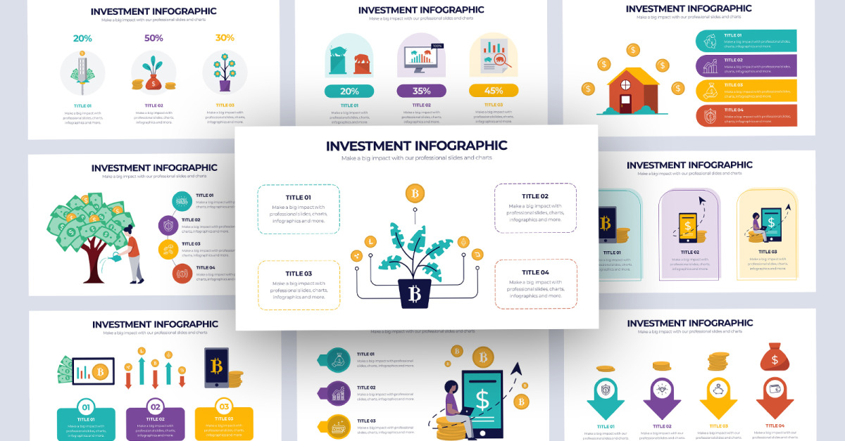 Infografica sugli investimenti aziendali Modello di presentazione di Google Modello di presentazione piatto, pulito, minimalista, elegante e flessibile.