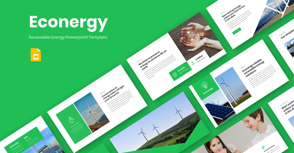 Econergy - Modello di diapositiva di Google per l'energia rinnovabile