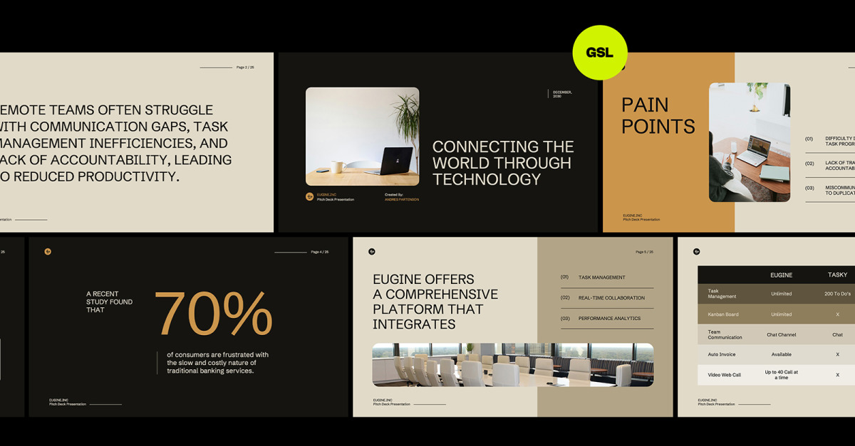 Il modello di presentazione Fintech Pitch Deck per Google Slide è un modello versatile che può essere utilizzato per presentare la tua attività, idee creative, progetti di startup, corsi di formazione e molto altro. Cattura l'attenzione del tuo pubblico con il nostro design professionale e moderno per risultati migliori. Il nostro modello offre numerose possibilità per adattarsi alle tue idee di presentazione e risparmiare molto tempo nella creazione delle presentazioni. Questo modello è facile da usare e può essere modificato senza problemi.