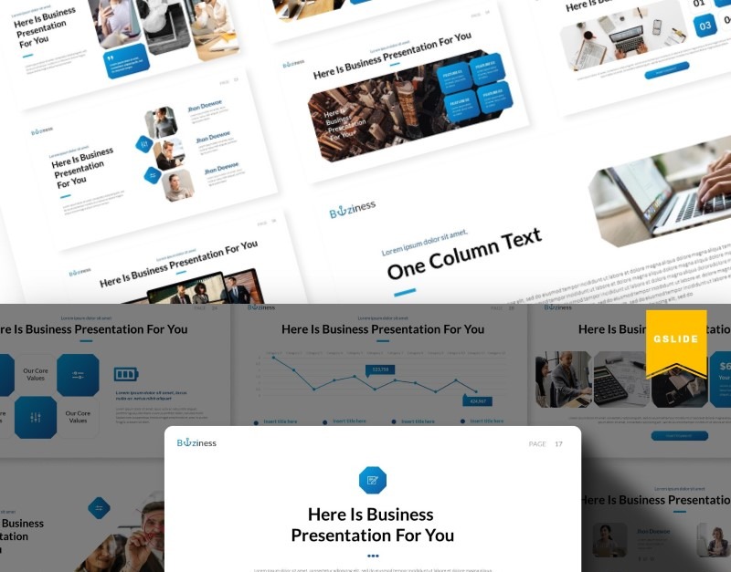 Questo è **Buziness | Modello di Presentazioni Google**- Scaricalo ora!, un fantastico modello di Presentazioni Google per tutte le esigenze aziendali o personali.