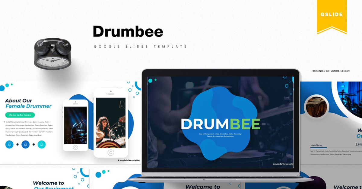 Questo è **Drumbee | Modello di Presentazioni Google**- Scaricalo ora!, un fantastico modello di Presentazioni Google per tutte le esigenze aziendali o personali.