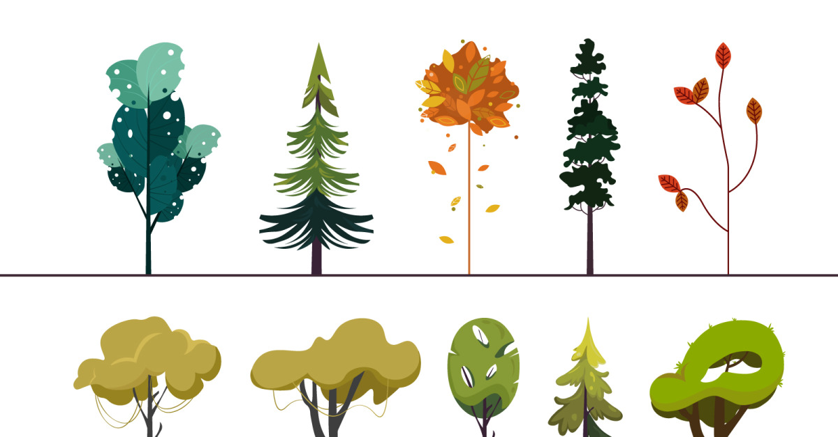 Collezione di alberi naturali vettoriali in stile disegnato a mano