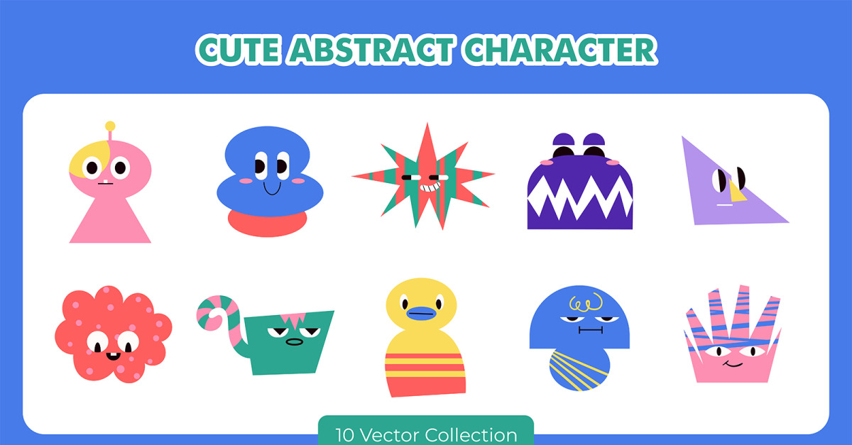 Set di illustrazioni di caratteri astratti carini - Caratteristiche Immagine 1