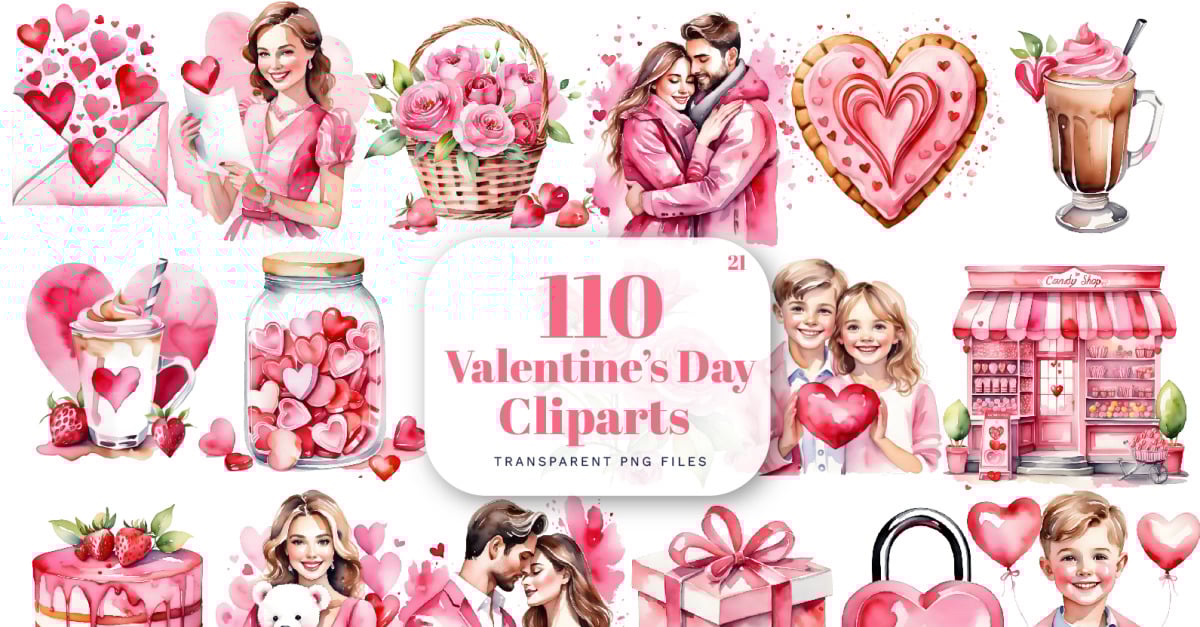 Pacchetto clipart di San Valentino con acquerello