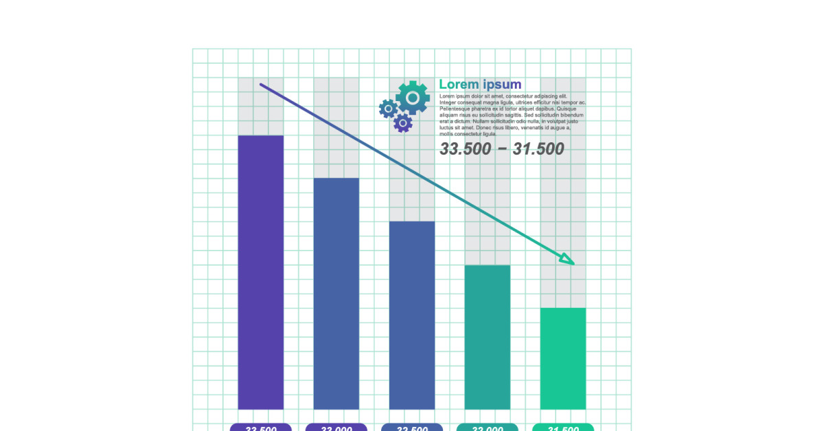 Grafico decrescente Grafico a barre Pressione economica Problema finanziario Infografica statistica