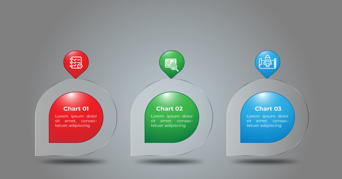 Design lucido del modello di elemento infografico vettoriale in tre fasi.