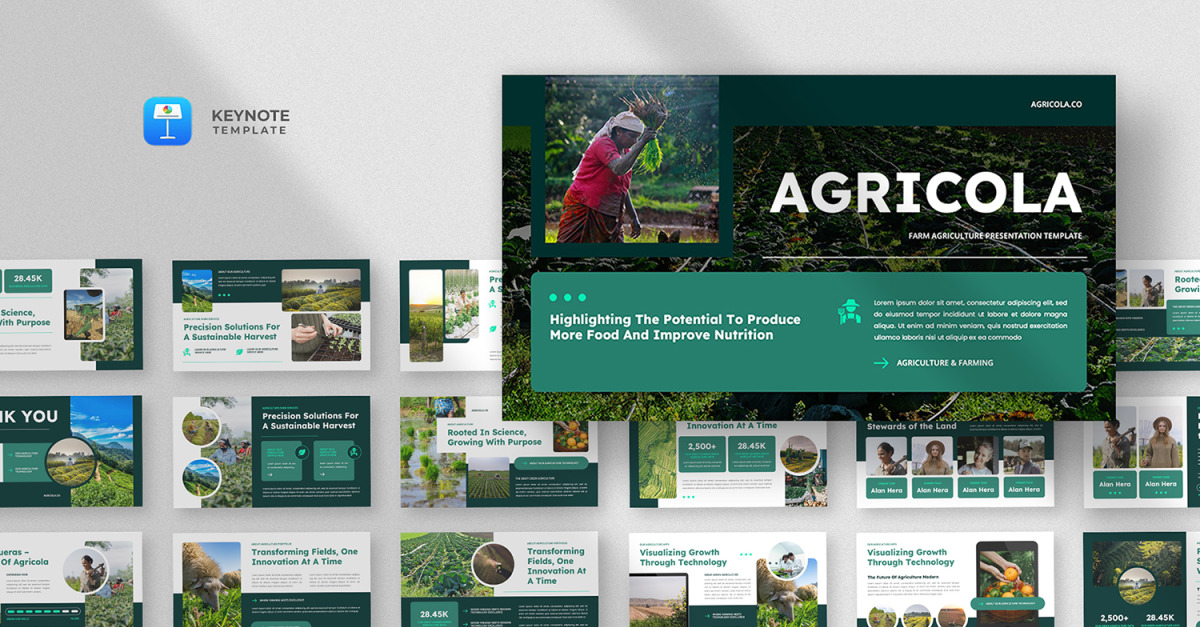 Agricola è un modello di presentazione moderno, pulito e minimalista, progettato per tutto ciò che riguarda agricoltura, agroalimentare, innovazione agricola e sostenibilità. Realizzato con un layout professionale e un design elegante, questo modello semplifica la presentazione di dati e idee complesse con chiarezza visiva e sicurezza.