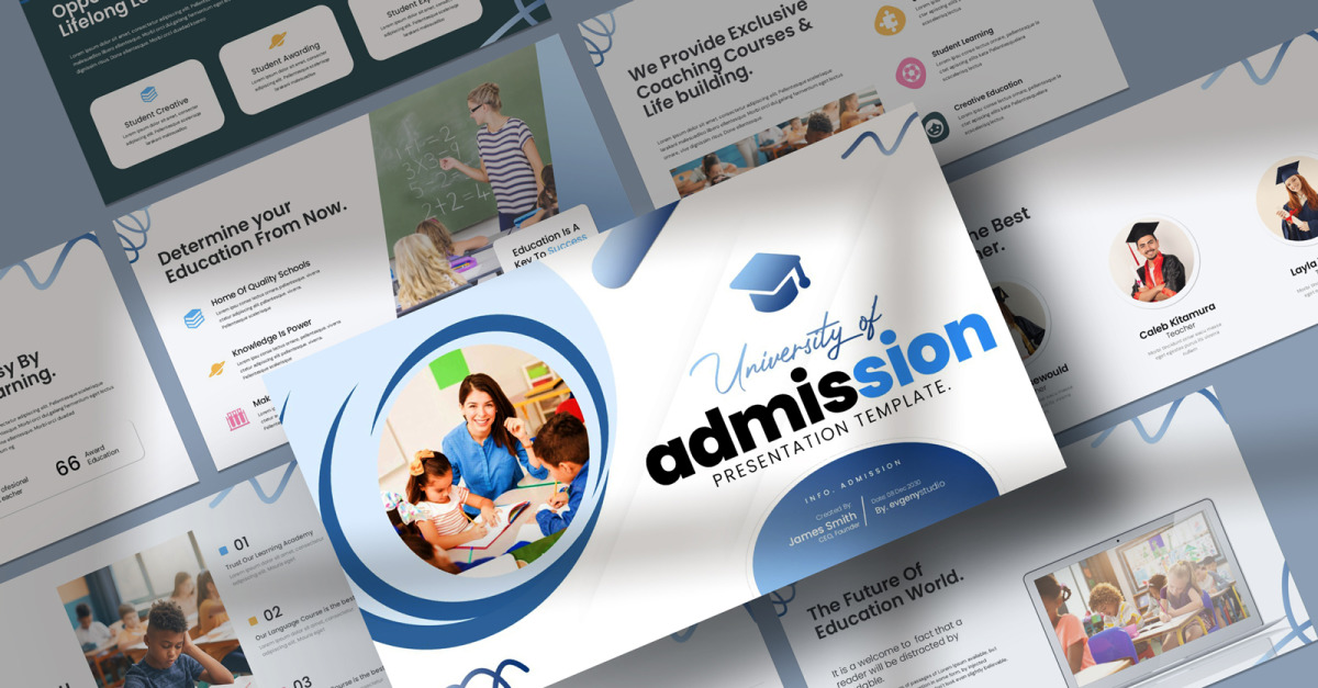 Presenta i tuoi lavori in modo professionale e pulito con il modello di presentazione University of Admission. Si tratta di un design semplice, contemporaneo ma potente che include layout fotografici creativi, infografiche, tabelle, icone vettoriali, diagrammi e tonnellate di fantastiche funzionalità per mostrare il tuo lavoro e il profilo della tua azienda a un altro livello.