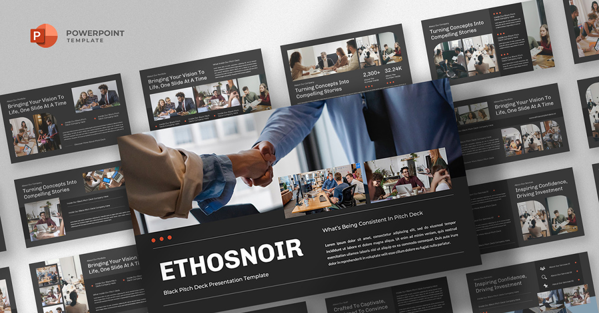 Ethosnoir - Modello di presentazione PowerPoint Black Pitch Deck