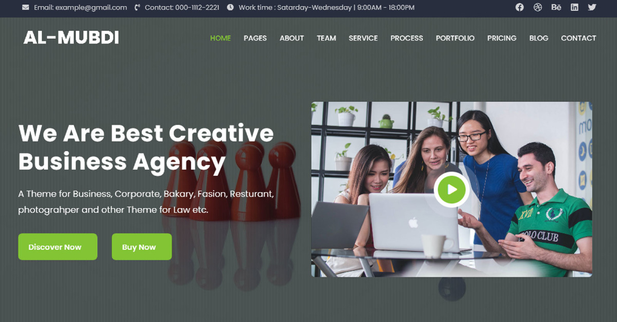 Al-Mubdi - Il tema è un tema multi-concept unico. È appositamente progettato per qualsiasi tipo di azienda, consulente, agenzia, portfolio, fotografia, libero professionista, moda, legale, panetteria, altra tecnologia aziendale ecc. cambiali tutti per adattarli alle tue esigenze.