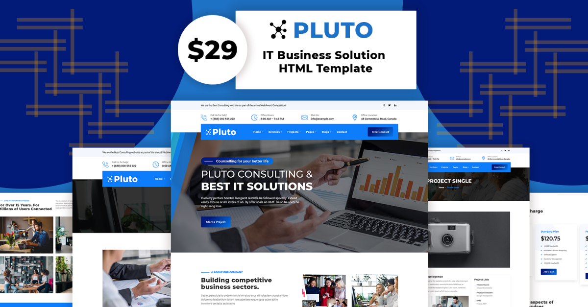 Pluto è un potente modello html ed è molto facile da usare, altamente personalizzabile Modello di società di soluzioni IT e servizi aziendali creato con l'ultimo Bootstrap 5. Il modello viene fornito con molti layout come blog, servizi, testimonianze, clienti, prezzi, contatti e altri. Pluto è davvero un modello html adatto per le aziende che offrono soluzioni IT o società di business IT, consulenza, servizi SEO e altri servizi relativi al marketing su Internet. Ha un design orientato allo scopo, un layout reattivo e pagine con caratteristiche speciali. Plutone può essere utilizzato anche per molteplici scopi
