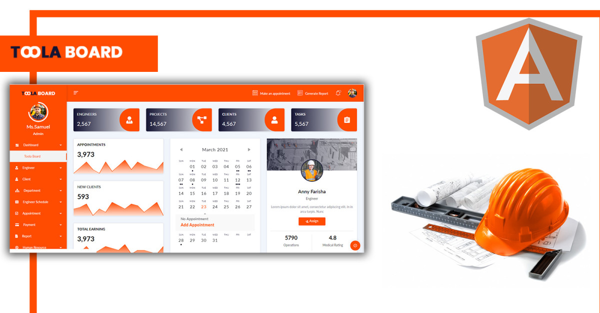 Toola Board - Engineering Dashboard Angular Template Pages