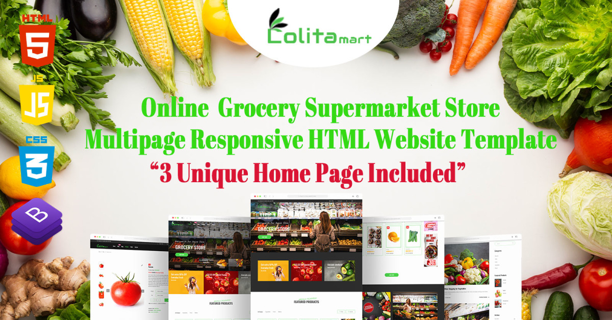 Lolitamart - Modello di sito Web HTML reattivo multipagina per negozio di alimentari online
