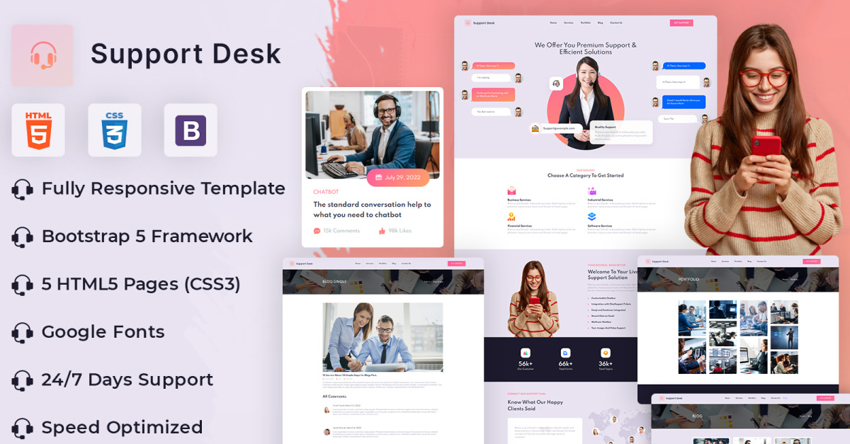 Raggiungi più clienti e risolvi i loro problemi con il tuo team utilizzando il modello di sito Web HTML di SupportDesk.