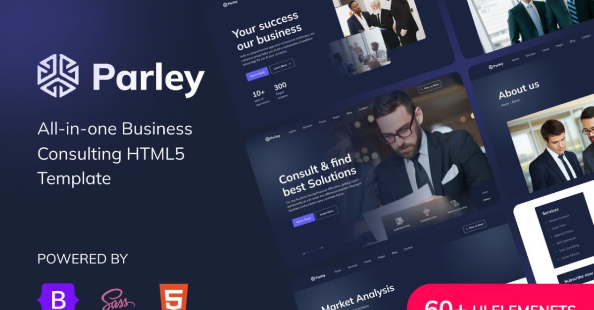 Parley è un modello HTML per consulenza aziendale moderno, reattivo e pronto per il lancio. Questo modello basato su Bootstrap 5 è particolarmente adatto a qualsiasi agenzia di consulenza, finanza, consulente, consulente, libero professionista, azienda e tutte le altre agenzie e aziende di consulenza.