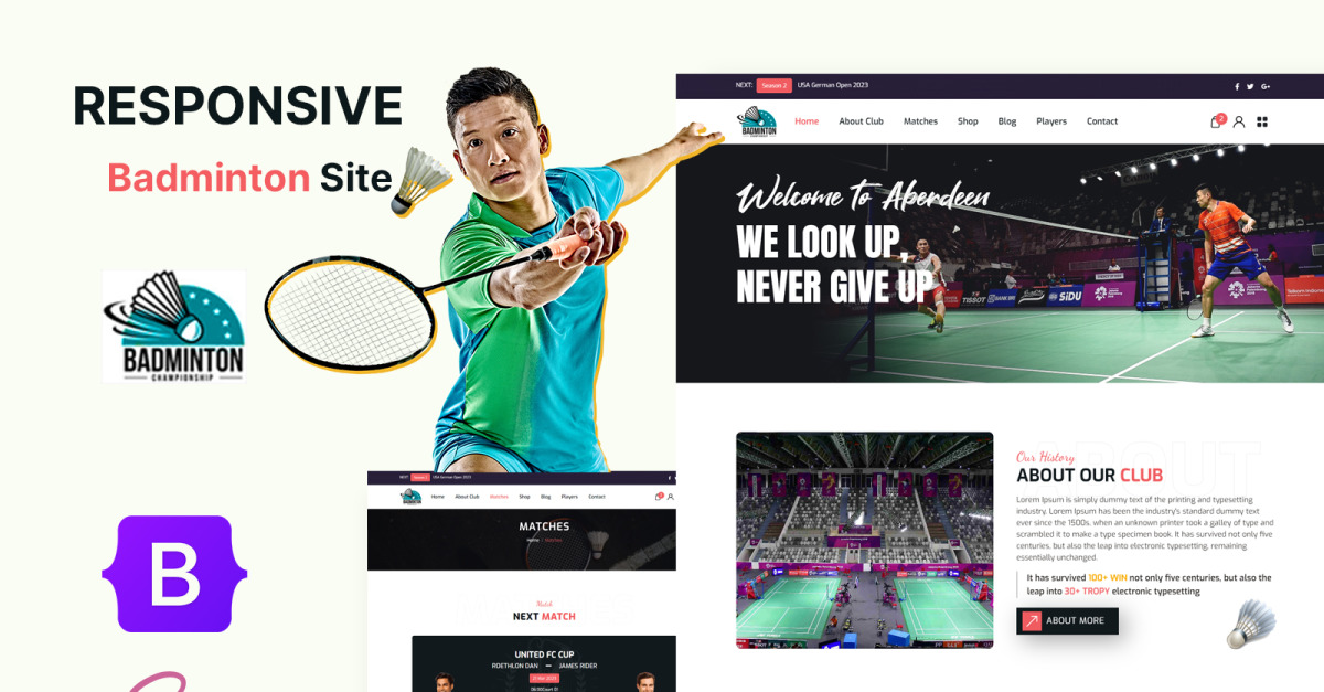 - New match listing page Clean, modern sports-themed design crafted specifically for badminton and racket-sport websites.
