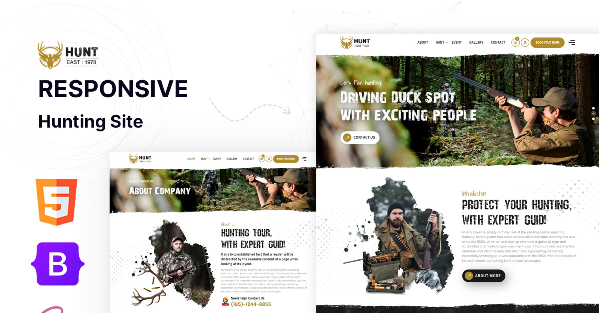 Hunt-East - Modello di sito Web HTML5 per caccia all'aperto e attrezzatura