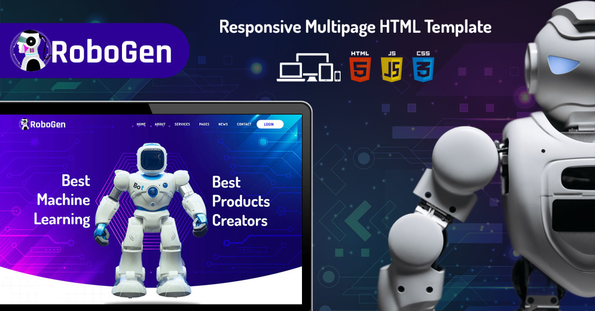 Presentazione di RoboGen, l'ultimo modello multiuso HTML progettato per liberare tutto il potenziale del tuo sito web. Crea straordinari siti web senza sforzo e affascina il tuo pubblico con il design moderno e reattivo di RoboGen. Che tu sia uno sviluppatore esperto o un principiante, RoboGen offre un'esperienza di creazione di siti Web senza soluzione di continuità, consentendoti di dare vita alla tua visione.