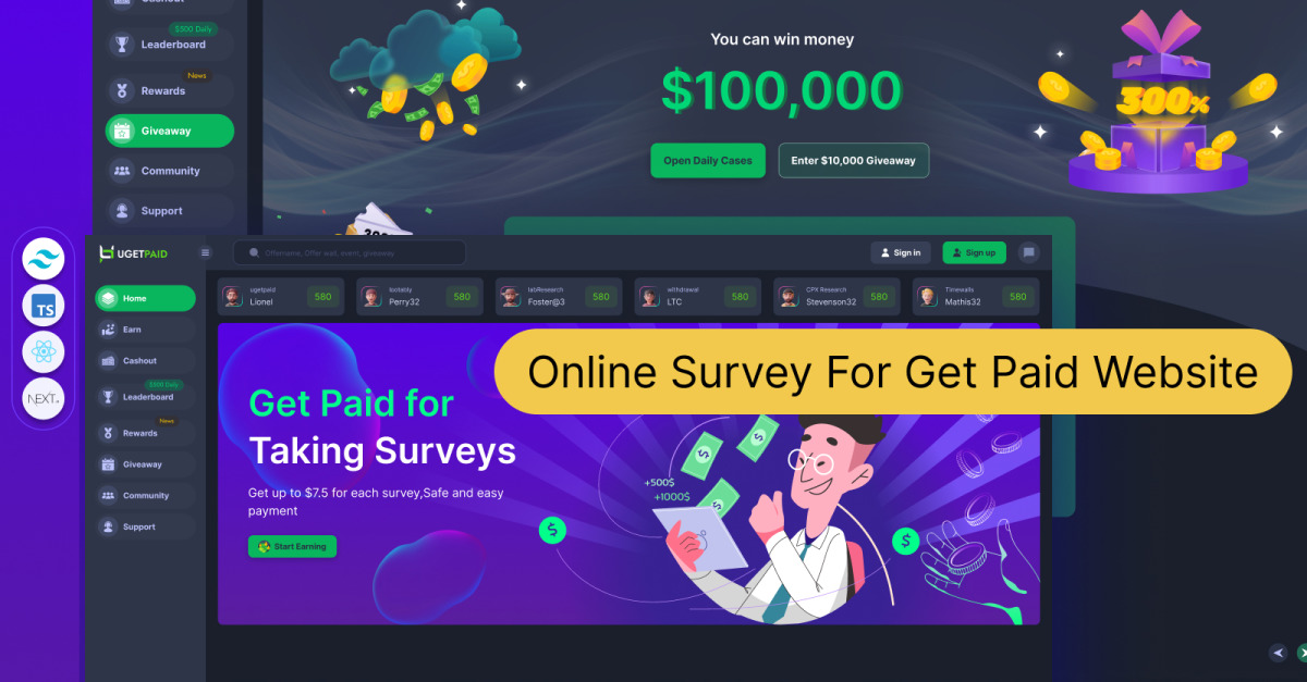 Ugetpaid - Sondaggio online per il sito web pagato React Next JS Template Giochi e vita notturna
