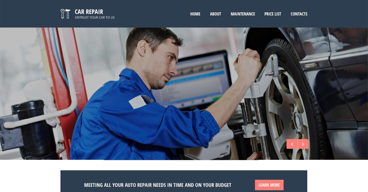 Modello di sito Web reattivo di riparazione auto