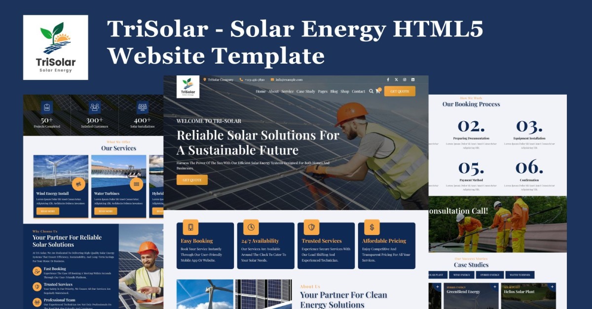 TriSolar è un template per siti web HTML5 all'avanguardia, meticolosamente progettato per le aziende del settore dell'energia solare. Progettato con tecnologie moderne come HTML5, CSS3 e JavaScript , offre una piattaforma raffinata e professionale per presentare i tuoi servizi. Che tu sia specializzato in installazioni di pannelli solari residenziali, progetti energetici commerciali su larga scala o soluzioni solari personalizzate, TriSolar rafforza il tuo brand con una presenza online fluida e visivamente accattivante.