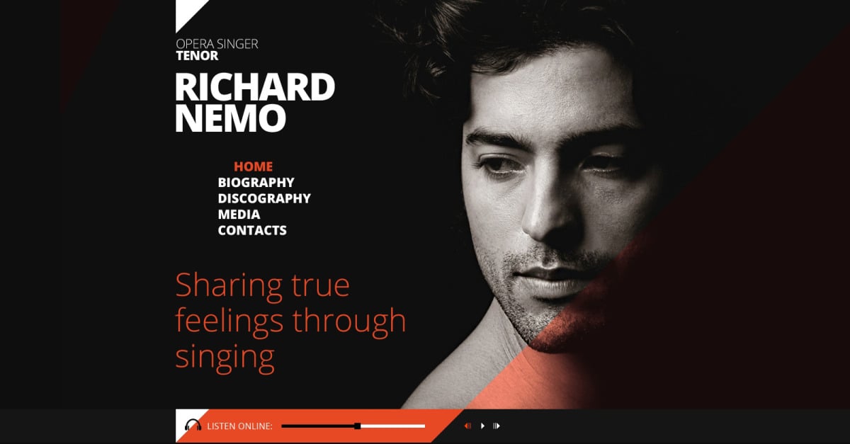 Modello di sito Web reattivo del cantante
