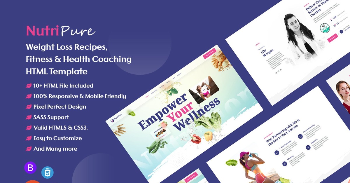 NutriPure - Ricette per perdere peso, fitness e coaching sulla salute Modello HTML