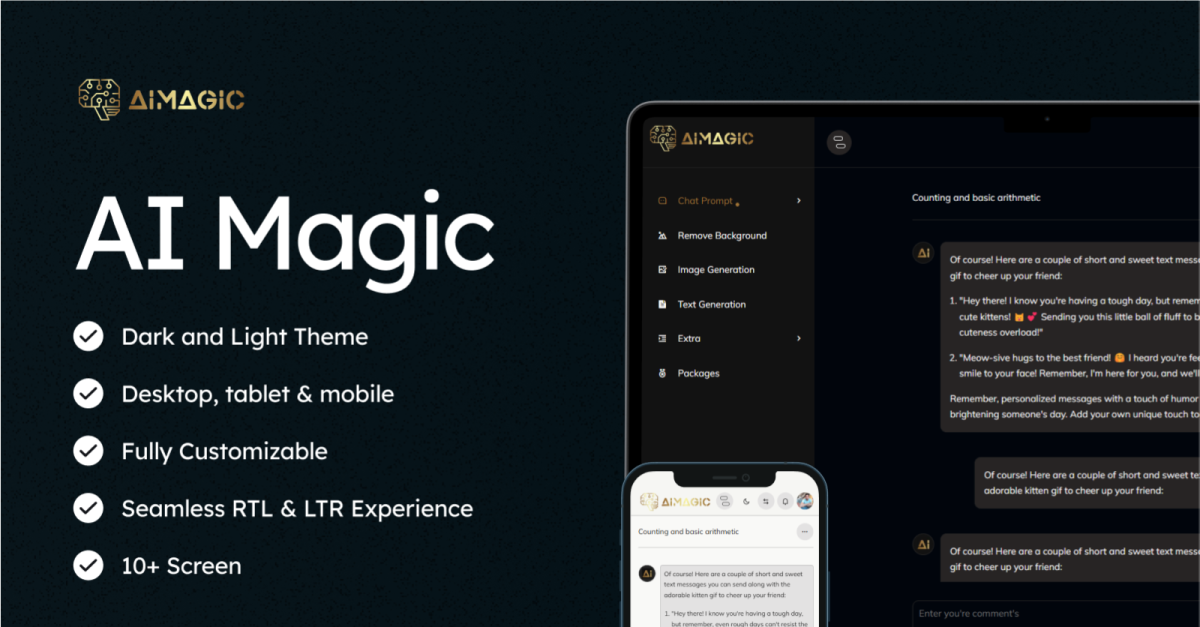 Dotato di pagine pronte all'uso, tra cui una homepage dinamica, una dashboard, un'interfaccia chatbot, uno strumento per la creazione di immagini, un sistema di rimozione dello sfondo, piani tariffari, impostazioni, accesso, registrazione e reimpostazione della password, questo modello offre tutto ciò di cui hai bisogno. Grazie alla sua struttura pulita e alla facile personalizzazione, la configurazione del tuo sito web è rapida e intuitiva. Con AIMagic, puoi catturare immediatamente l'attenzione dei visitatori con un'accattivante presentazione sulla homepage e trasformare la curiosità in coinvolgimento.