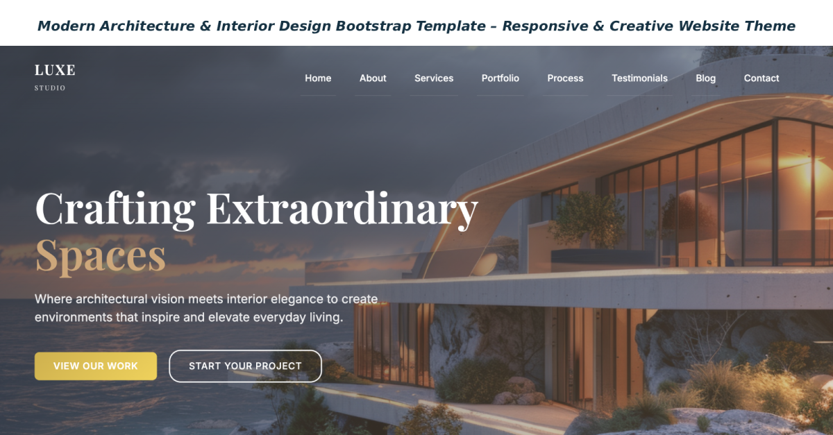 Dai impulso alla tua attività di architettura o interior design con questo template Bootstrap moderno e completamente responsive. Progettato con layout puliti, sezioni creative e un'estetica professionale, questo template è perfetto per architetti, interior designer, studi di design e agenzie creative. Dotato di animazioni fluide, vetrine di portfolio, sezioni dedicate ai servizi e moduli di contatto, è pronto per lanciare la tua straordinaria presenza online. Compatibile con tutti i dispositivi e facile da personalizzare, questo tema ti aiuta a presentare i tuoi progetti e ad attrarre clienti senza sforzo.