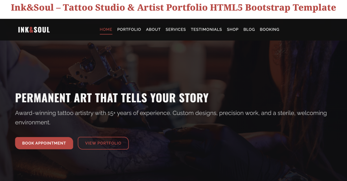 Ink&Soul – Modello HTML5 Bootstrap per studio di tatuaggi e portfolio di artisti