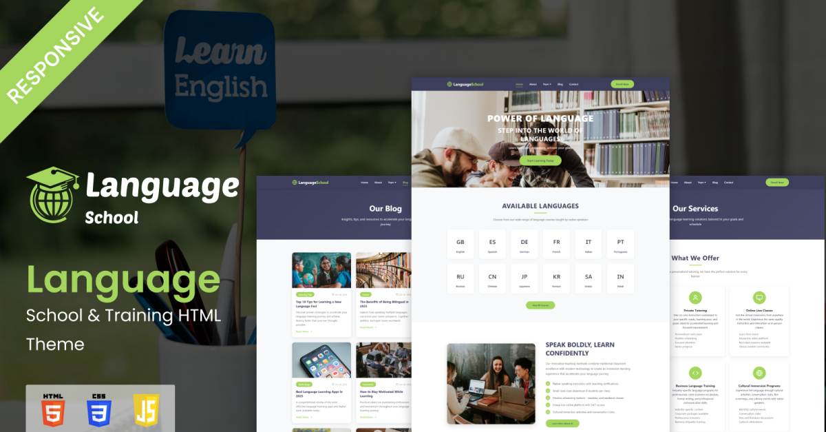 Il tema HTML Language School and Training è un modello professionale, moderno e orientato alla formazione, progettato specificamente per istituti di lingua, centri di formazione, tutor online, corsi di preparazione IELTS e TOEFL, accademie di traduzione, centri di formazione culturale e organizzazioni educative che offrono corsi di lingua. Il tema offre un aspetto accademico raffinato con layout puliti, blocchi di contenuti strutturati ed elementi visivi accattivanti che aiutano le scuole a presentare i loro programmi, i formatori e l'ambiente di apprendimento con chiarezza e sicurezza.