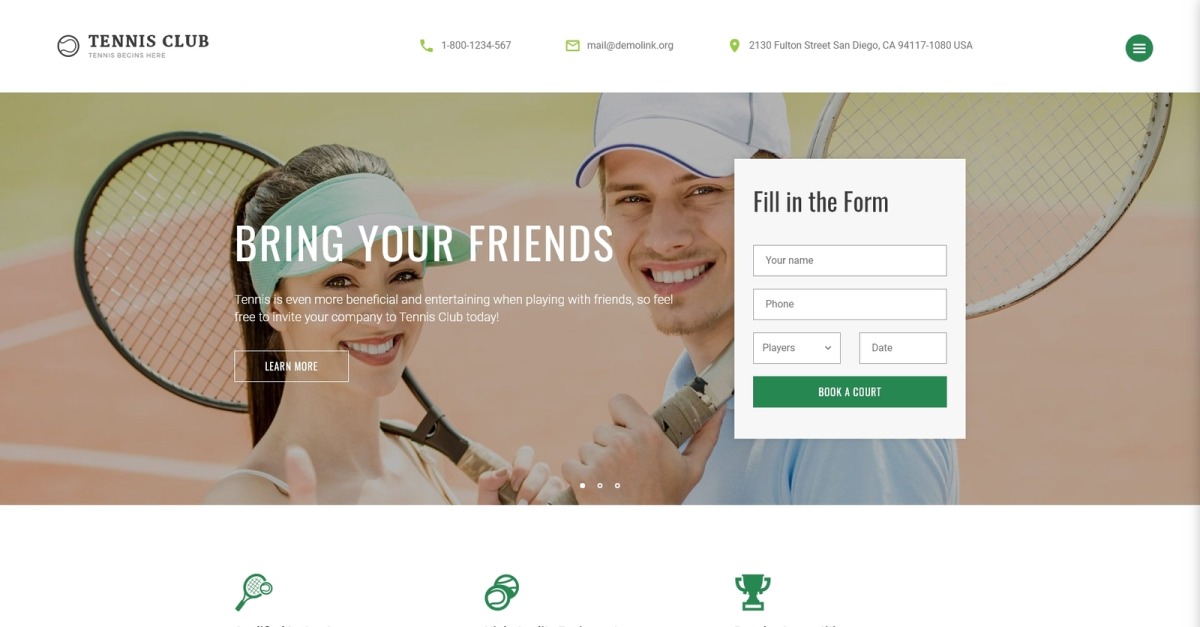 Tennis Club - Modello di sito web multipagina per sport ed eventi