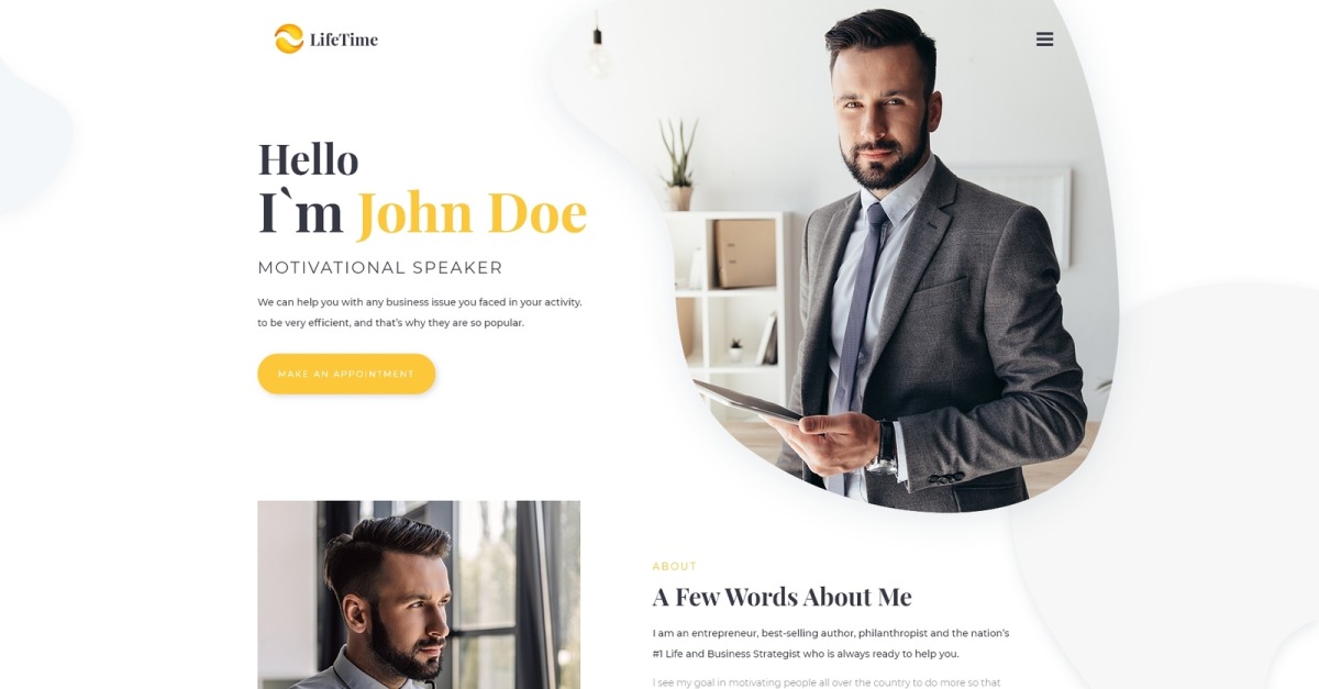 LifeTime - Modello di sito Web HTML5 multipagina pulito per altoparlanti motivazionali