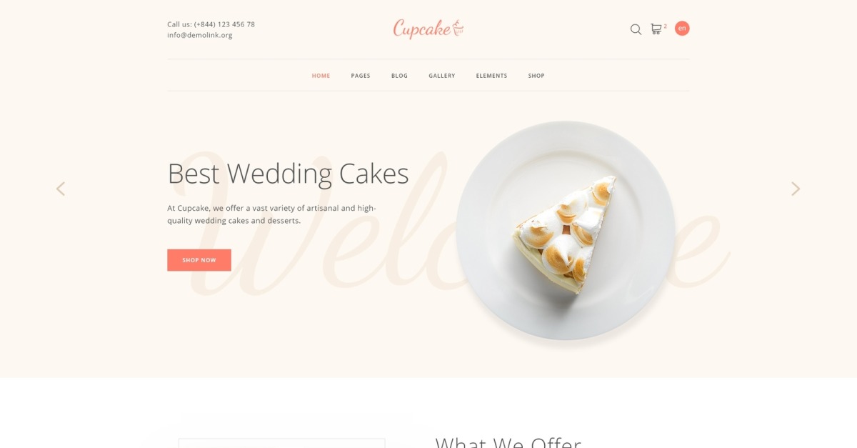 Sviluppato da designer professionisti, Cupcake si adatta perfettamente a negozi di caramelle, panetterie, pasticcerie, ecc. Ha un design accattivante realizzato con colori tenui. Ma se vuoi personalizzarlo, puoi modificare qualsiasi parte di questo modello di pasticceria. Puoi aggiungere nuovi effetti ed elementi o riprogettare la struttura del modello. Oltre alle funzionalità sopra menzionate, il nostro modello fornisce: