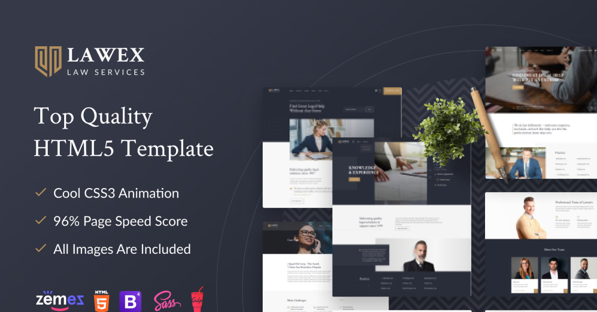 Se vuoi creare un'atmosfera di fiducia hai bisogno di un sito web affidabile e altamente reattivo. Puoi rovinare la tua reputazione se non riesci a creare un buon sito web. Questo è il motivo per cui ti presentiamo il modello HTML Lawex. È un prodotto pre-sviluppato altamente affidabile che ti consente di creare un sito Web da zero in pochi clic. Ti farà risparmiare tempo e denaro. E si adatta a qualsiasi sito web di uno studio legale.