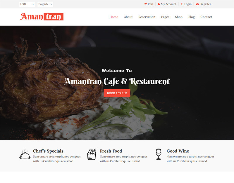 Amantran - Modello di sito Web HTML5 per ristoranti