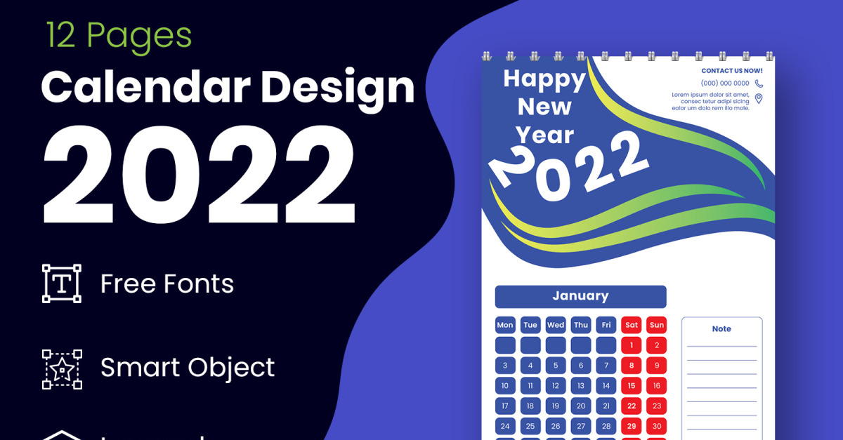 Modello di disegno del calendario professionale 2022 di stile geometrico Vector