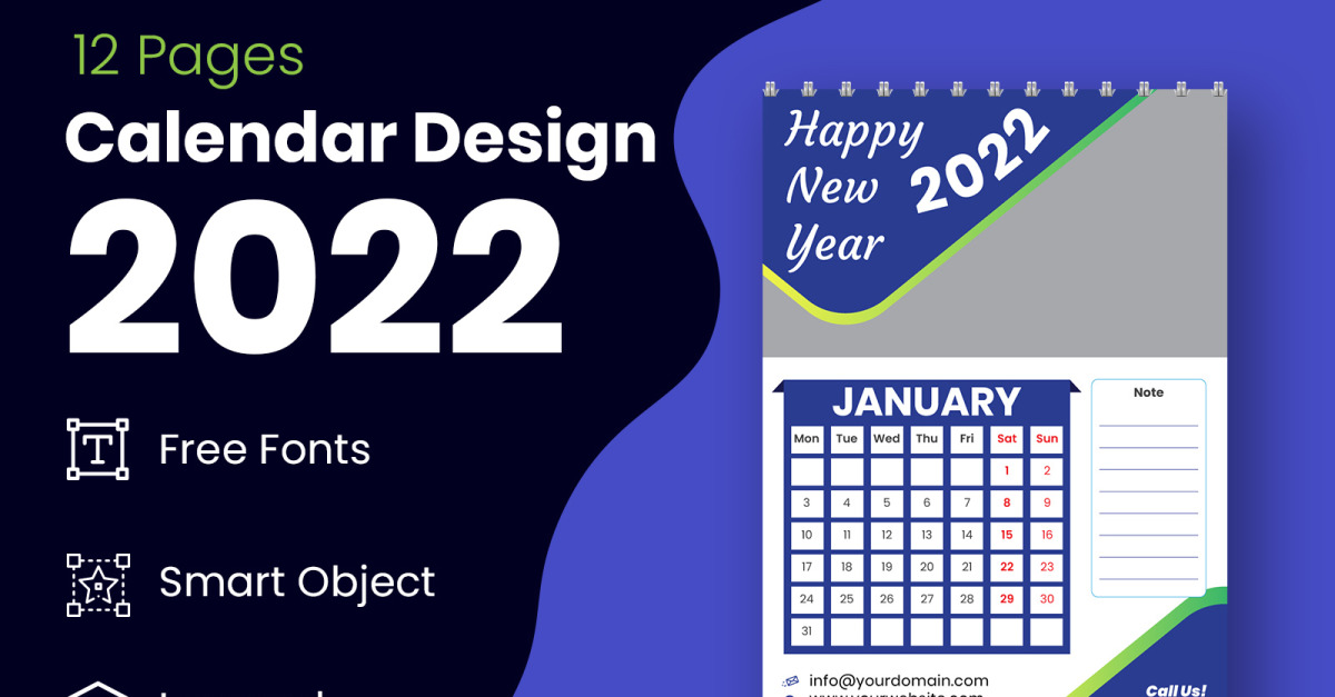 Nuovo anno 2022 Red & Black Calendar Design Template Vector Planner