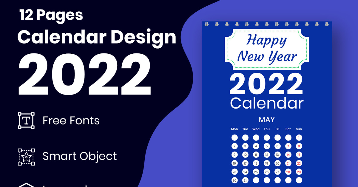 Modello di disegno di calendario di parete aziendale colorato 2022 con vettore di festività - Caratteristiche Immagine 1