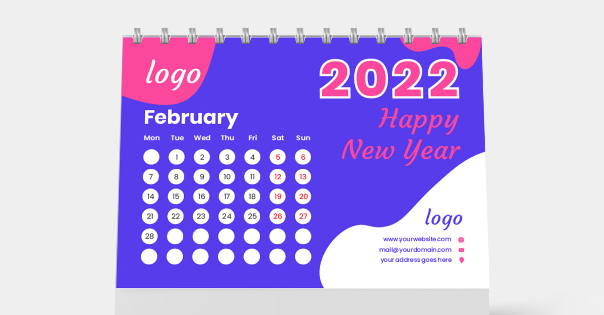 Calendario da tavolo viola 2022 Template Vector - Caratteristiche Immagine 1
