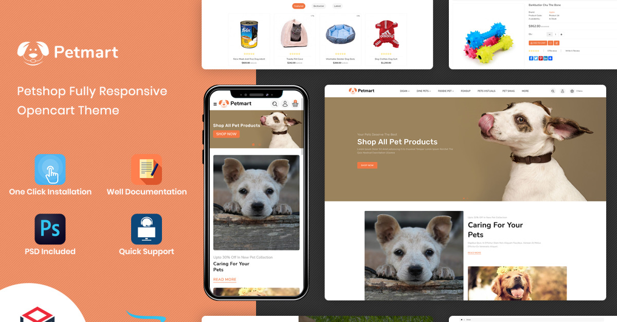 Il negozio Petshop soddisfa sicuramente tutti i tuoi desideri per creare un sito Web, Petstore, Cibo per animali. In questo tema include molte funzionalità intelligenti e molte funzionalità avanzate per la tua attività sul sito web. Il modello è adatto a qualsiasi negozio sulla versione aggiornata di OpenCart 3.x.
