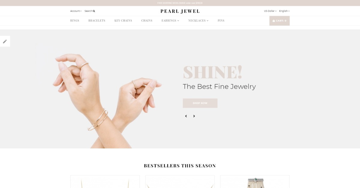 Pearl Jewel - Modello OpenCart per negozio online di gioielli sofisticati