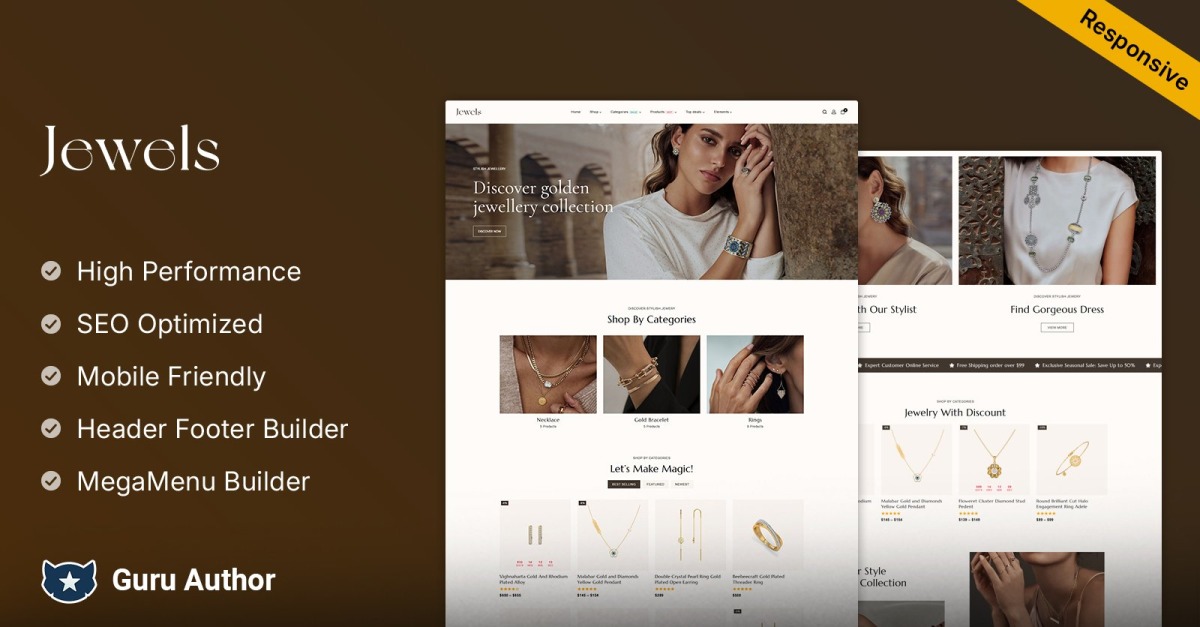 Jewels è uno straordinario tema WooCommerce creato esclusivamente per gioiellerie, rivenditori di diamanti e negozi di gemme. Questo elegante tema unisce raffinatezza e funzionalità moderne, assicurando che il tuo negozio online non solo abbia un aspetto squisito, ma funzioni anche senza problemi. Realizzato con Elementor, Jewels ti consente di creare un sito Web visivamente accattivante senza alcuna conoscenza di programmazione.
