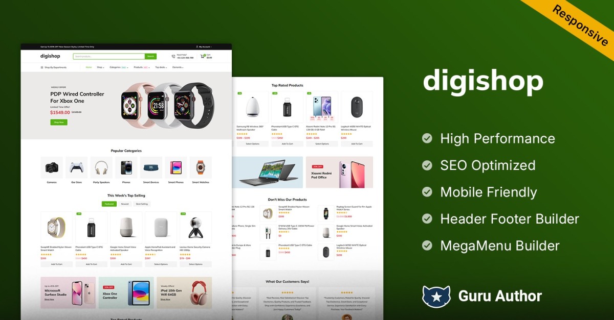 Digishop è un tema WooCommerce elegante, moderno e performante, creato da [Webdigify] per le aziende che richiedono flessibilità, velocità e un design all'avanguardia. Che gestiate un megastore di elettronica o un negozio di gadget di nicchia, Digishop si adatta perfettamente all'identità del vostro brand e alla sua gamma di prodotti.