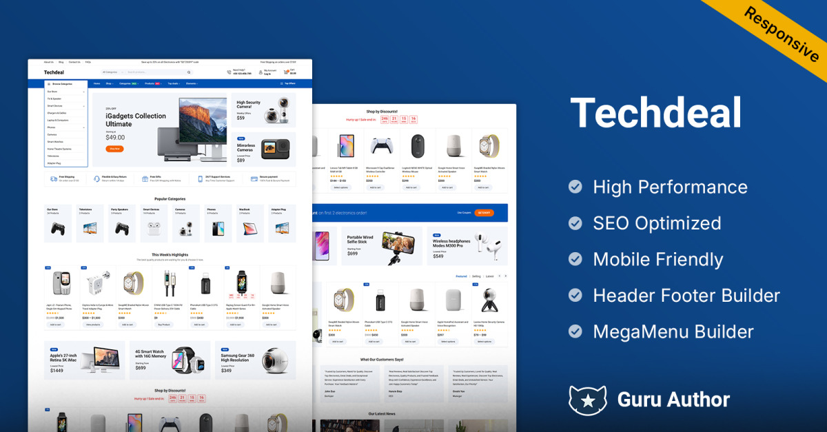 Techdeal – Potenzia il tuo negozio online con questo tema WooCommerce di Webdigify per elettronica e gadget. Techdeal di Webdigify è un tema WooCommerce ad alte prestazioni e ricco di funzionalità, creato per potenziare la tua attività online di elettronica, gadget o tecnologia digitale. Progettato per offrire velocità, funzionalità e un design accattivante, Techdeal è perfetto per un'ampia gamma di nicchie, tra cui modelli per negozi di elettronica , modelli per negozi di computer , modelli per negozi di video , modelli per negozi di armi , modelli per negozi di software e persino modelli per negozi di viaggi .